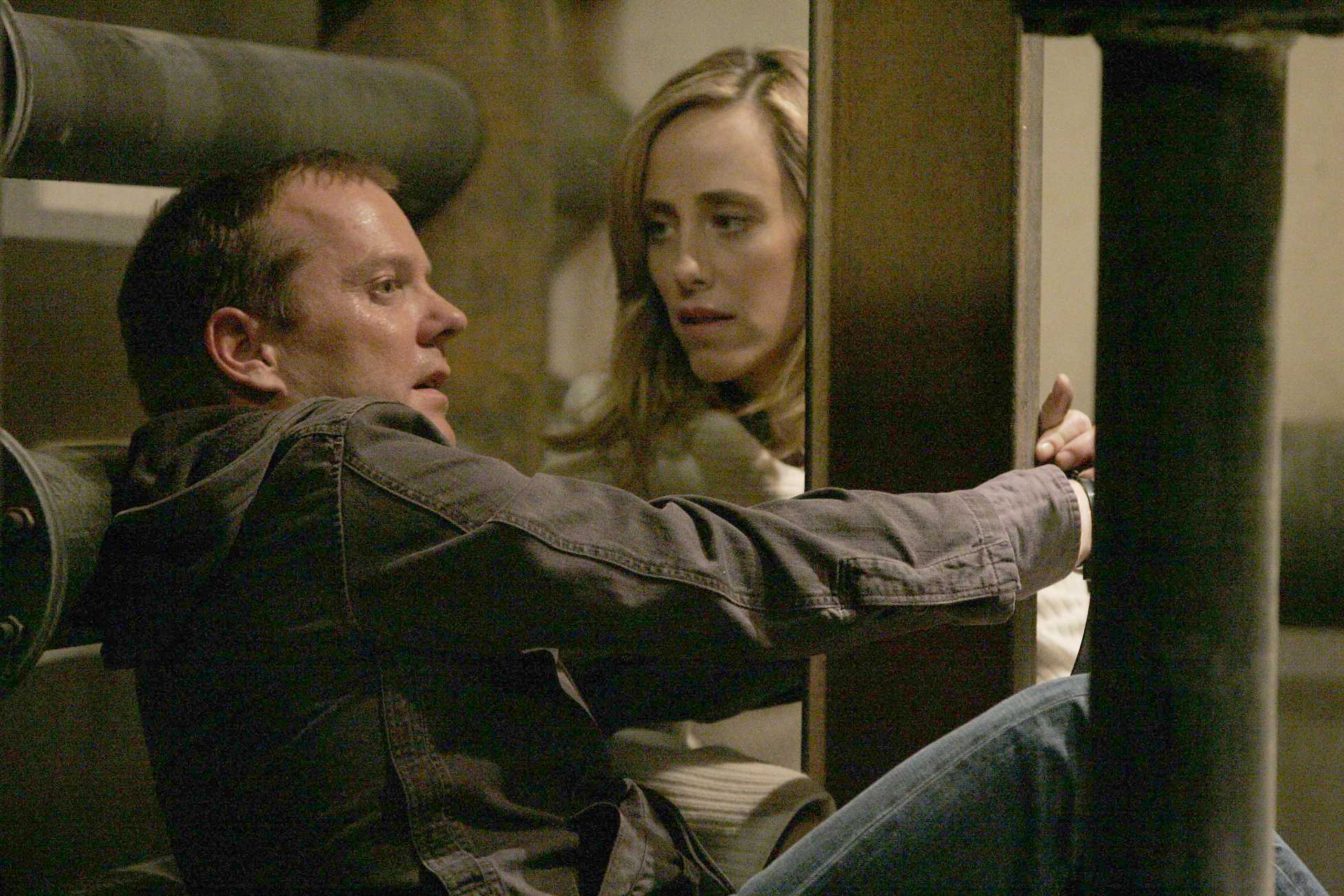 24: Jack (Kiefer Sutherland, L) and Audrey (Kim Raver, R) are stopped from revealing evidence in the 24 episode “Day 5: 12:00 Midnight – 1:00 AM” airing on Monday, April 17 (9:00-10:00 PM ET/PT) on FOX. ©2006 Fox Broadcasting Co. Cr: Kelsey McNeal/FOX