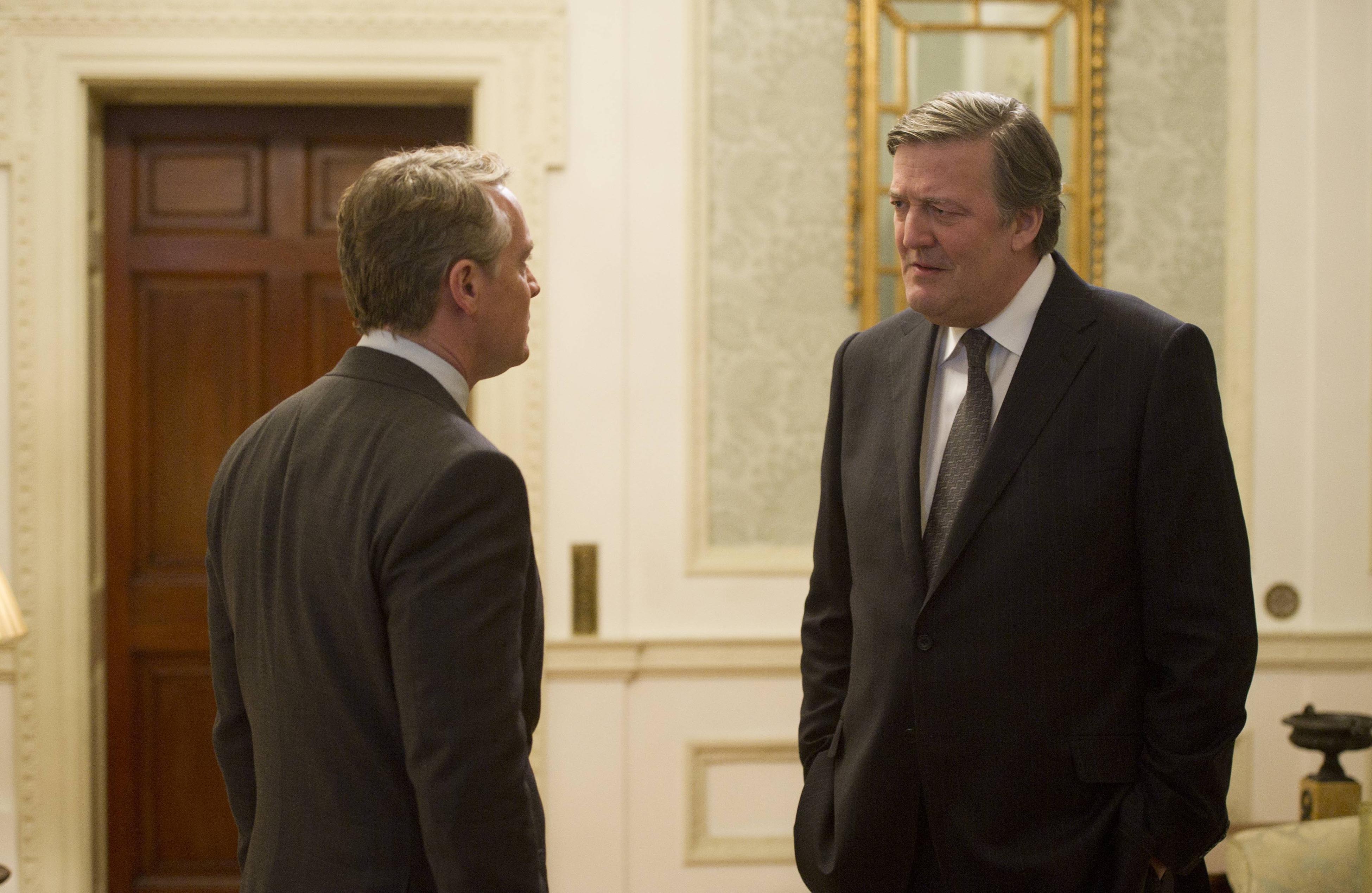 24: LIVE ANOTHER DAY: Prime Minister Davies (guest star Stephen Fry, R) meets with Boudreau (Tate Donovan, L) in the "6:00 PM – 7:00 PM" episode of 24: LIVE ANOTHER DAY airing Monday, June 16 (9:00-10:00 PM ET/PT) on FOX. ©2014 Fox Broadcasting Co. Cr: Chris Raphael/FOX